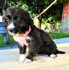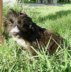 Velvet wurde von den Romakindern geärgert und mit einem Besen wurde ihr Angst eingejagt. Das kleine Hundebaby schrie vor lauter Angst, sodass andere Kinder die Polizei riefen, die Velvet befreite. Die Wuscheline wurde zu unserer Maria gebracht, die sie auf einer Pflegstelle unterbringen konnte. Dort lebt Velvet nun bis zu ihrer Ausreise Ende August. Trotz ihrer Erlebnisse freut sich Velvet über Menschen und zeigt dies in intensivem Schwanzwedeln. Wir gehen davon aus, dass sie mit Kindern in ihrem neuen Zuhause keine Probleme haben wird, wenn diese ihr Geduld entgegenbringen. Mit Hunden und/oder Katzen kommt sie bestimmt ebenfalls prima klar. Da wir die Eltern von Velvet nicht kennen, können wir zur ausgewachsenen Größe der Maus keine Angaben machen. Wie alle Hunde ist auch Velvet geimpft, gechipt und entwurmt. Außerdem hat sie bei ihrer Einreise auch ihren eigenen EU-Heimtierausweis im Gepäck.