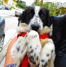 Winny ist eine freundliche, lebenslustige kleine Hündin, in der Hundepension sicherlich etwas unterfordert, was Bewegung angeht. Sie war sehr nett zu uns, ließ sich gerne streicheln und war sehr interessiert. Genauso gerne tobte sie aber auch mit ihren Freunden durch das Gehege. Sie bringt bestimmt Leben in die Bude ihrer zukünftigen Besitzer :)
