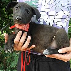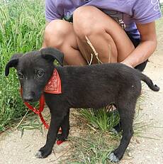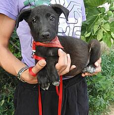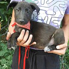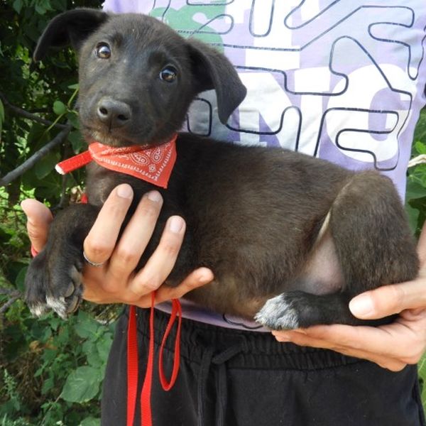 Glücklicherweise wurde die Mutter einer jungen Tierschützerin auf das Winseln der Babies aufmerksam und rief sofort ihre Tochter an. Die junge Tierschützerin nahm die Kleinen mit in das Haus ihrer Mutter, damit sie nicht auf der Straße überfahren wurden. Nun leben die Welpen zusammen mit anderen Hundekindern bei der jungen Tierschützerin auf einem eingezäunten Grundstück, wo sie bis zu Ihrer Ausreise Anfang September bleiben. Wir kennen weder die Mutter noch den Vater, gehen aber davon aus, dass die Bande ausgewachsen keine Riesen werden. Eine sichere Angabe zur ausgewachsenen Größe ist selbstverständlich nicht möglich.
