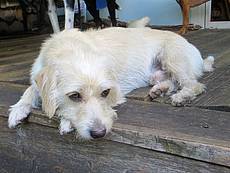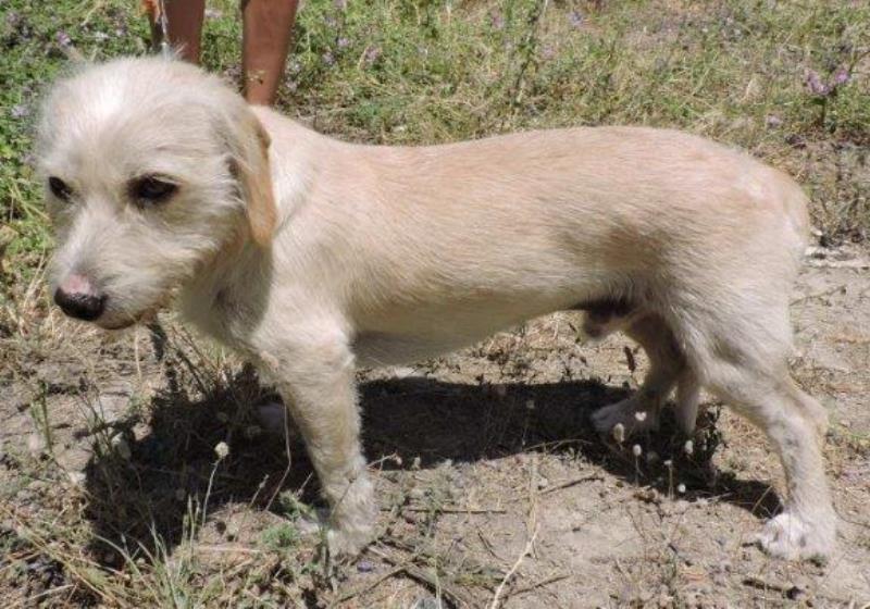 Bogi ist ein kleiner ca 10 kg schwerer Hundejunge, der vor einigen Wochen mit einer schweren Hautkrankheit am Hafen von Patras gefunden wurde.