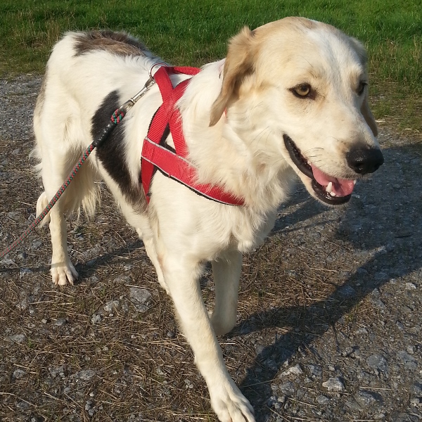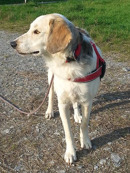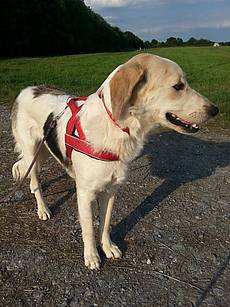 Sie hat sich in der kurzen Zeit super gemacht, ihre anfängliche Angst hat sie fast ganz abgelegt. Sie läuft problemlos an der Straße und der Verkehr macht ihr nichts mehr aus, Jogger und Radfahrer im Wald beachtet sie nicht mehr. Nur fremden Männern gegenüber ist sie noch skeptisch und mißtrauisch, wenn sie aber Vertrauen gefasst hat, ist das auch kein Problem mehr.
