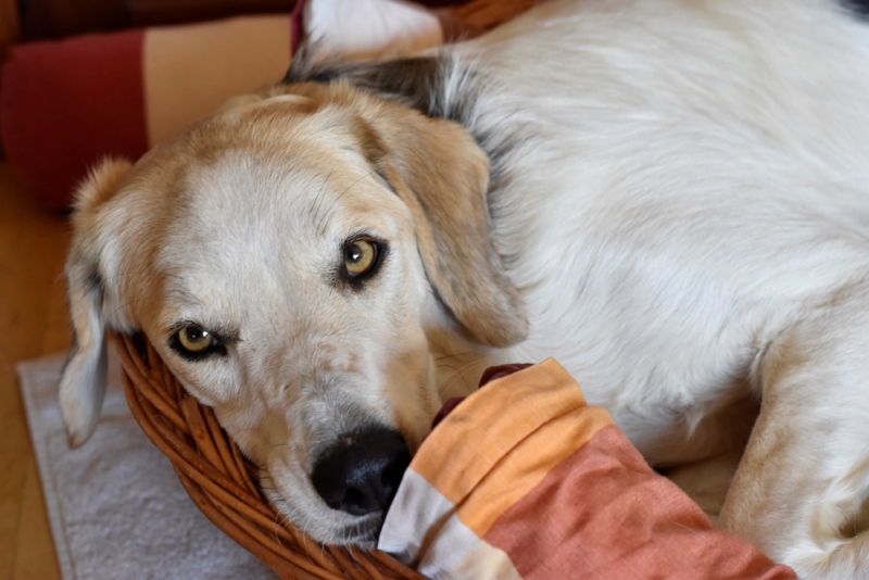 Im Alltag ist sie absolut entspannt, bei ihr läuft alles in einem gemächlichen Tempo, sie geht prima an der Leine, ohne zu ziehen, sie liegt gerne in ihrem Körbchen und döst vor sich hin. Bei den Spaziergängen auf der großen Wiese wird sie durchaus munter, mit Vorliebe buddelt sie Löcher und steckt die Schnauze in alle Mäuselöcher. An der Schleppleine kann man sie mittlerweile laufen lassen, sie guckt auch immer, wo ihre Leute sind. Aber natürlich muss noch am Abruf gearbeitet werden!