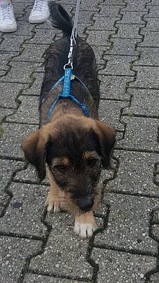 Danny ist ein ca 60 cm großer und 22 kg schwerer Hundejunge, der im Frühjahr vergangenen Jahres in Patras geboren und im zarten Alter von wenigen Wochen zusammen mit seiner Schwester bei Maria in den Garten geworfen wurde. Nach einem kurzen Aufenthalt in einer Pflegestelle in Patras, kam Danny im Juli 2017 zunächst in eine Pflegefamilie in Aachen . Bereits kurze Zeit später hatte er sein Zuhause gefunden. Leider muss er dieses nun nach einem halben Jahr wieder verlassen, da seine Familie mit ihm nicht klarkommt. Danny ist ein typischer, sehr verspielter aber auch sehr lernwilliger Junghund, der klare Ansagen und Regeln braucht. Er liebt die Spaziergänge in der freien Natur, wobei er momentan einen gewissen Jagdinstinkt zeigt. Wir denken, dass hundeerfahrene und bewegungsfreudige Menschen mit Danny einen tollen Begleiter an die Seite bekommen. Der Besuch einer Hundeschule wird dem Lauser viel Spaß machen, ebenso können wir uns ihn aufgrund seiner Bewegungsfreudigkeit auch gut beim Hundesport vorstellen. Danny ist ein junger, hübscher Rohdiamant, der nur darauf wartet, geschliffen zu werden und mit seinen Menschen durch dick und dünn gehen zu dürfen. Wer also Liebe, Ausdauer und vor allem Konsequenz in der Erziehung mitbringt, wird in Danny den Freund fürs Leben finden.