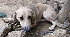 Demmy wurde zusammen mit einer kleinen Hündin von örtlichen Tierschützern gefunden, als die beiden Hunde auf der Suche nach Futter den Müll durchwühlten.