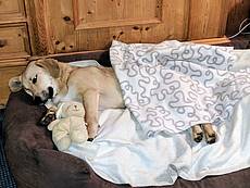 Heute ist Tag 3 nach Demmy's Operation und es geht ihr den Umständen entsprechend schon ganz gut. Gestern durfte sie den blöden Trichter gegen ein stylisches Shirt tauschen, damit sie nicht an die Wunde geht. Alles in allem wird Demmy aber wieder vollkommen genesen und laufen können, wie jeder andere Hund auch.