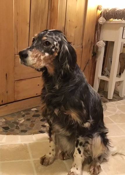 Ella ist eine reinrassige englische Setterhündin, die Anfang des Jahres vor der Tierarztpraxis in Patras gefunden wurde.