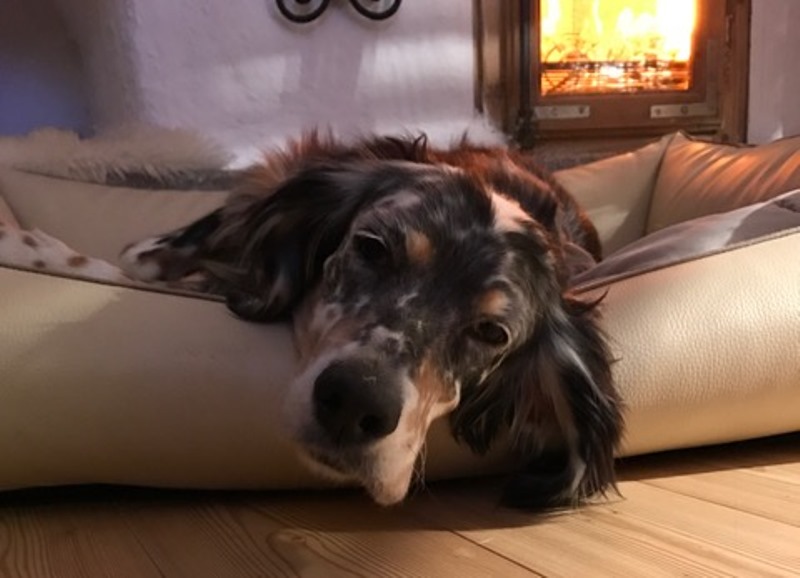 Sie ist wirklich sehr sehr lieb, super verträglich mit allem und jedem, artig im Haus. Draußen läuft sie an der Schleppleine. Autofahren ist für sie kein Problem- sie ist gerne überall dabei.