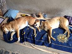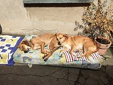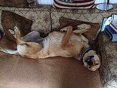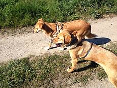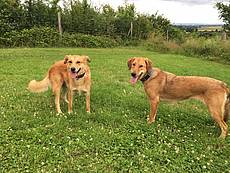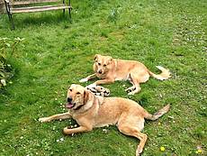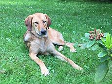 Nach ca. 1,5 Monaten Leinengang kann man sie auch frei laufen lassen, muß aber das Umfeld im Auge behalten, da wohl 80% Jagdhund ( Lagonikos Tis Rhodou ) drinsteckt und sie entsprechend Gas gibt, wenn Wild ( Hasen, Rebhühner, Rehe, Fasane, Wildschweine ) aufschlägt, bzw. sie eine frische Spur ausmacht. Zuhause, mit Tom läuft alles recht locker ab, hin und wieder gibt's ein kleines Gerangel wegen Spielzeug aber alles in allem hat sie sich gut eingelebt und kleine Allesfresserin offenbart - da muß auch ein Auge drauf werfen. Somit ist aus der anfänglichen Pflegestelle ein Zuhause geworden, womit Ella scheinbar auch sehr glücklich ist ( siehe Photos ).