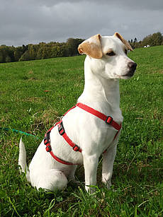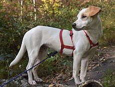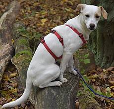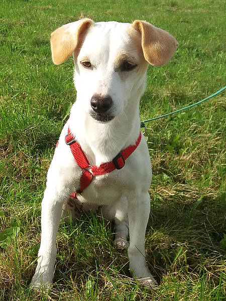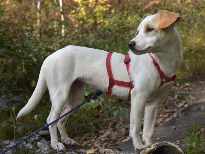 Hier zeigt sie sich als sehr unkompliziert, sie läuft gut an der Leine, Treppenlaufen bereitet ihr kein Problem und sogar stubenrein ist sie bereits, obwohl sie noch nie im Haus gelebt hat. Mit anderen Hunden gibt es auch keine Probleme, allerdings hat sie anfangs vor großen Hunden Angst und sucht Schutz, das legt sich aber recht schnell.