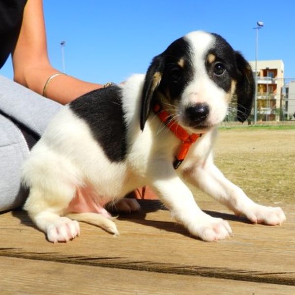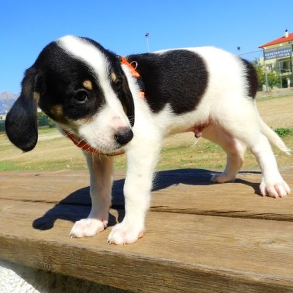 Die kleine Hundefamilie wurde von örtlichen Tierschützern unter der Treppe der Bücherei in Patras gefunden. Natürlich wurden sie dort weggeholt und zunächst zur Tierärztin gebracht, wo alle geimpft und gechipt wurden. Nun lebt die Bande bis zu ihrer Ausreise Mitte November auf einer Pflegestelle, wo sie zusammen mit anderen Hunden herumtollen. Mama Lynn ist eine ca 45 cm große Hündin, den Vater der Meute kennen wir allerdings nicht. Von daher können wir keine Aussage zur Endgröße der Welpen treffen. Wie alle Welpen sind auch diese 5 verspielt und benötigen viel Aufmerksamkeit und Erziehung. Selbstverständlich werden sie mit Kindern, Hunden und/oder Katzen in ihren neuen Familien keine Probleme haben. Jeder hat einen eigenen EU-Heimtierausweis bei der Ankunft in Deutschland im Gepäck.