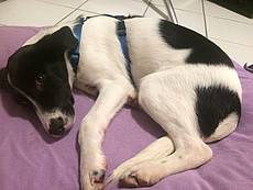 Loki hat sein Körbchen gefunden und ist von seinen Pflegeeltern ins neue Zuhause begleitet worden.