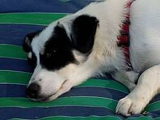 Male ist total verträglich mit allen Hunden und meinem Katerchen. Sie ist aufmerksam, unkompliziert und total verschmust. Male hat offensichtlich eine eingebaute Automatik : hinten Schwanz wedeln und vorne Pflegemama abschlecken.
