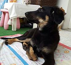 Örtliche Tierschützer brachten die Hundefamilie in einer Pension in Sicherheit, wo die Welpen nun auf ihre Ausreise im August warten. Wie alle Welpen sind auch diese 4 sehr verspielt und benötigen in ihrem neuen Zuhause viel Aufmerksamkeit und liebevolle Erziehung. Mit Kindern, Hunden und/oder Katzen werden die Hundekinder bestens klarkommen. Zur ausgewachsenen Größe können wir keine Angaben machen, da wir den Vater nicht kennen. Die Welpen sind geimpft, gechipt und entwurmt, wenn sie nach Deutschland kommen. Außerdem bringt jeder seinen eigenen EU-Heimtierausweis mit.