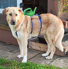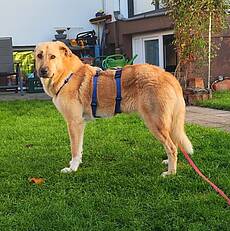 Er läuft ganz sanft an der Leine, nur bei plötzlichen Begegnungen und Geräuschen muss man ihm die nötige Unterstützung oder auch eine Ausweichmöglichkeit geben und ihn durch die Situation führen. Jogger, Radfahrer, Pferde sind ihm unbekannt und verunsichern ihn noch sehr. Maximo ist überhaupt nicht aggressiv, eher das Gegenteil, am liebsten würde er vor diesen Begegnungen davonlaufen. Da er doch ein großer Teddy ist, sollte man standfest sein. Nach 2,5 Jahren Tierheim verunsichert ihn Vieles noch sehr, er hat ja dort nichts kennengelernt. Aber wir haben auch schon viele Hürden gemeistert.