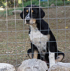 Mick musste direkt ärztlich versorgt werden, seine Rute war verletzt und wurde zur Hälfte amputiert. Die Verletzung ist längst verheilt und beeinträchtig Mick in keinster Weise. Eine örtliche Tierschützerin hat die Kleinen bei sich aufgenommen und mit der Flasche groß gezogen. Jetzt sind sie alt genug für eine Vermittlung, ihre Impfungen sind komplett und ab Anfang Oktober dürfen sie sich auf die Reise machen.