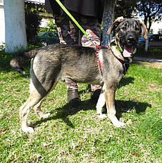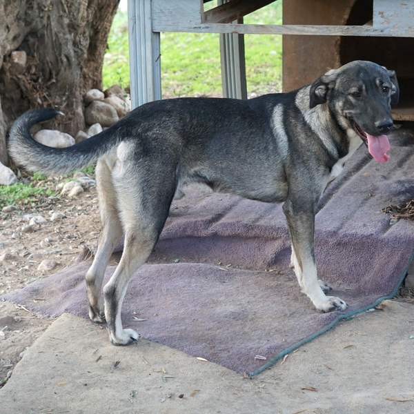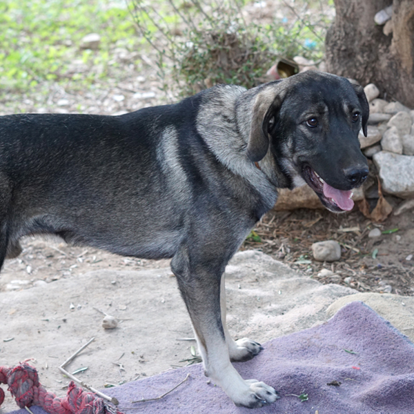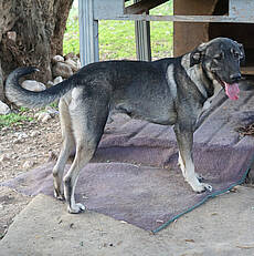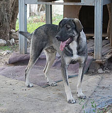 Mino lebt auf einem eingezäunten Gelände mit zwei weiteren Hunden zusammen. Wir erlebten ihn bei unserem Besuch als recht offen und neugierig, er hatte keine Berührungsängste mit uns und suchte direkt den Kontakt. Mino ist eher ein in sich ruhender Rüde, mit seinen beiden Mitbewohnern zeigte er sich sehr freundlich.