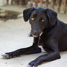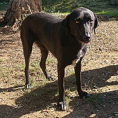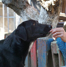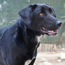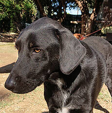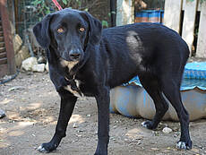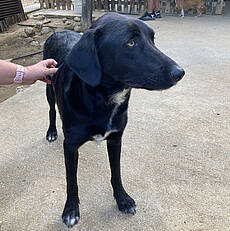 Nomi lebt zusammen mit weiteren Hunden und Katzen in einer örtlichen Pflegestelle. Sie ist dort seit ihrem Welpenalter und fühlt sich da sichtlich wohl. Mit uns, für sie fremden Personen, war sie etwas vorsichtig am Anfang, aber das legte sich ganz schnell. Nomi ist eine junge, schwarze Schönheit!