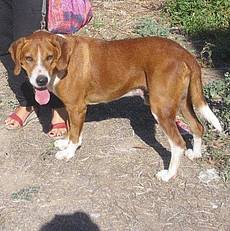 Eine engagierte Tierschützerin auf der Insel Ithaka befreite ihn von der Kette und nahm ihn mit zu sich nach Hause, wo er nun mit mehreren anderen Hunden zusammenlebt.