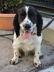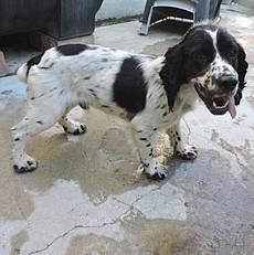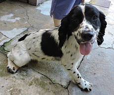 Ribo ist vermutlich ein Bretonenmischling, der von seinen Besitzern verlassen wurde.