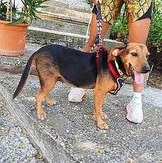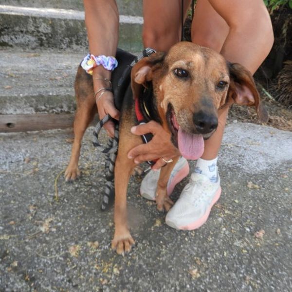 Rouney wurde zusammen mit Meizi weit abseits von Patras in den Bergen entdeckt. Wanderer fanden die Beiden in der unbewohnten Gegend und informierten zum Glück örtliche Tierschützer. Die Hündinnen hatten Hunger und Durst. Ohne Hilfe hätten sie es dort nicht lange überlebt. Ob sie dort von einem Jäger „entsorgt“ wurden, oder früher einen Besitzer hatten, der sie ausgesetzt hat, wird ihr Geheimnis bleiben. Ihren Rettern gegenüber waren sie jedenfalls sehr offen und ließen sich bereitwillig mitnehmen.