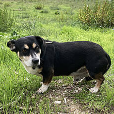 Mit seinen kurzen Beinchen und gerade mal 25cm Höhe, ist er eigentlich ein Zwerg, aber sein Selbstbewusstsein ist riesig - zumindest in seiner gewohnten Umgebung. Er lebt momentan auf einer Pflegestelle mit ganz vielen Hunden und Katzen zusammen und ist immer mitten im Geschehen. Er geht auf Alle offen zu, freut sich über Zuwendung und sucht den Kontakt zu Menschen, egal ob groß oder klein. Rudi grinst immer und versprüht ununterbrochen gute Laune :) Ausserhalb seiner Pflegestelle wird er etwas unsicherer, weshalb wir für ihn Menschen suchen, die ihn mit Geduld und Klarheit durch alle neuen Situationen führen und ihm Zeit zum Ankommen geben. Aufgrund seiner Größe wäre ein ebenerdiges Zuhause, oder zumindest eins mit wenig Treppen empfehlenswert.