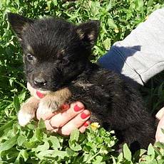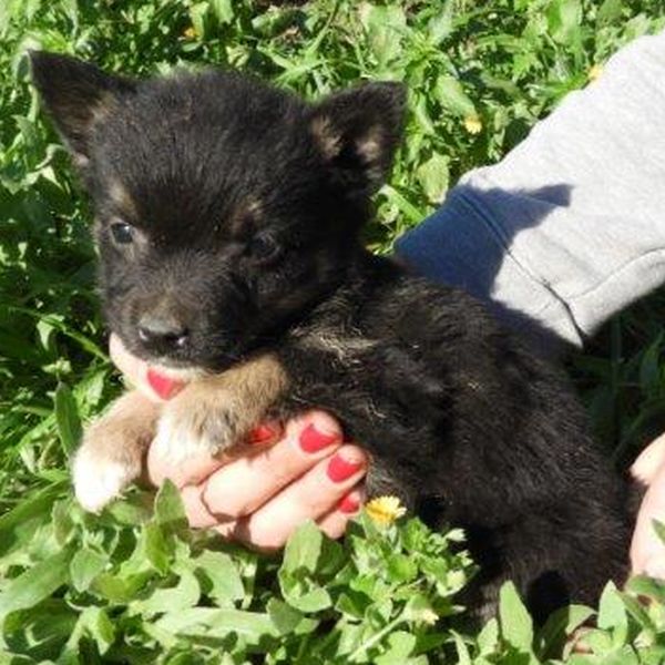 Der kleine Nando möchte unter Zuhause gesucht seine spitzen Öhrchen zeigen.