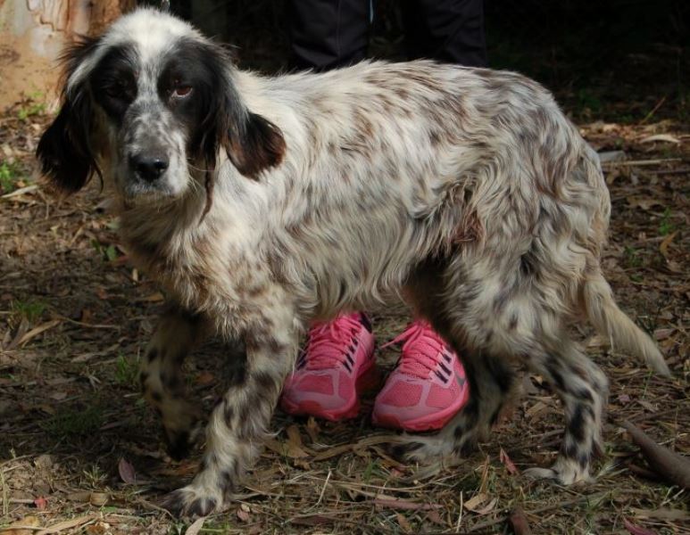 Sugar ist eine bildhübsche Englischsettermixhündin, die von ihren griechischen Besitzern in einem Waldstück ausgesetzt wurde.