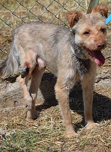 Als die Tierschützer ihn fanden, wies er Verletzungen am Kopf und an einem Hinterbein auf, sodass er bereits 2mal operiert werden musste. Die Tierärztin brachte Takis auf einer Pflegestelle unter, die sich um die Physiotherapie für das operierte Bein kümmern sollte, was jedoch nicht geschah. Takis wurde an seinem Beinchen erneut operiert und muss nun noch bis voraussichtlich Ende Juli 2015 den externen Fixateur tragen. Anschließend sollte das Beinchen physiotherapeutisch behandelt werden, damit der kleine Kerl problemlos wieder sausen und toben kann.