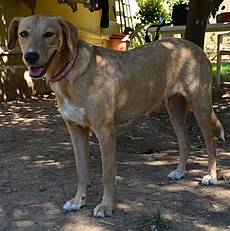 Ihr bisheriges Leben war sehr schlecht. Sie wurde von der Straße geholt, dann aber doch wieder ausgesetzt und bekam 10 Welpen. Ihre Babys wurden ihr weggenommen und an einem Bahnhof ausgesetzt. Glücklicherweise fanden die örtlichen Tierschützer Thelma’s Welpen und konnten sie zu ihrer Mama zurückbringen. Die Hundemama nahm einen Welpen nach dem anderen und brachte sie in einem unbewohnten Haus in Sicherheit. Leider gefiel den übrigen Bewohner der Gegend dies nicht. Maria und ihre Kollegen nahmen die Mutter und die Welpen mit zu sich nach Hause. Die Welpen sind mittlerweile alle vermittelt, nur die Mama wartet noch auf ihre Menschen. Thelma ist die ideale Begleiterin für eine Familie, da sie mit Kindern, Hunden und Katzen klarkommt. Natürlich benötigt die hübsche Hündin zunächst viel Zeit und vorallem Geduld, um sich an ihr neues Leben zu gewöhnen. Anfänglich ist Thelma etwas zurückhaltend, sucht aber die Liebe und Geborgenheit bei ihren Menschen. Thelma wurde negativ auf alle Mittelmeerkrankheiten getestet und wartet nun auf ihre Chance, den Flug ins Hundeglück nehmen zu dürfen.