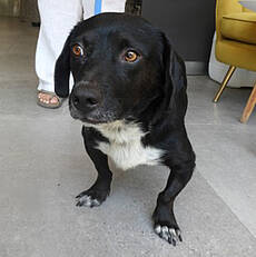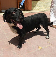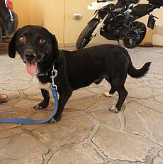 Der kleine Rüde hielt sich schon ein paar Tage vor dem Feuer in der Nähe von Marias Wohnung auf. Maria hatte Timmy mit Futter und Wasser versorgt und ihn im Auge behalten. Als das Feuer plötzlich in die Stadt kam und das Chaos ausbrach, verschwand der Kleine. Umso glücklicher war Maria, als sie ihn einen Tag später in der Notunterkunft am Strand, die speziell für Tiere errichtet wurde, wieder gefunden hat. Sie brachte ihn zum Tierarzt, wo er kastriert, entwurmt und geimpft wurde. Auch ein Test auf die Mittelmeerkrankheiten wurde durchgeführt, der glücklicherweise in allen Bereichen negativ ausfiel. Jetzt ist Timmy in einer örtlichen Hundepension untergebracht und wartet auf ein schönes Zuhause. Er ist ein toller Hundejunge, verträglich mit seinen Artgenossen und freundlich zu allen Menschen. Die Leiterin der Pension ist begeistert von dem kleinen Kerl.